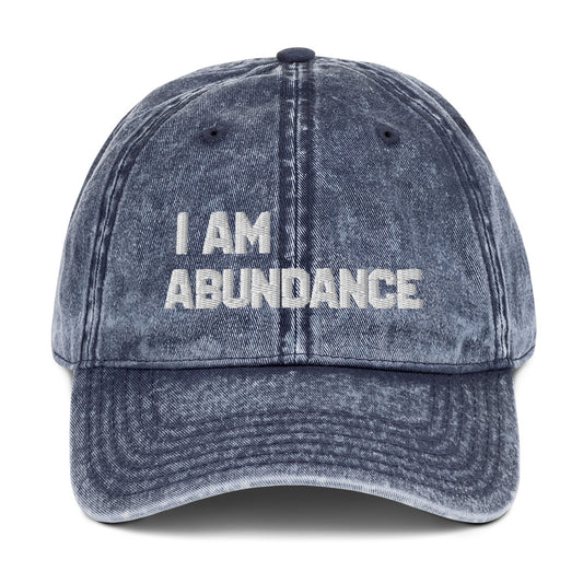 Motivational Cap " I AM ABUNDANCE" Law of Affirmation Embroidery Vintage Cotton Twill Hat