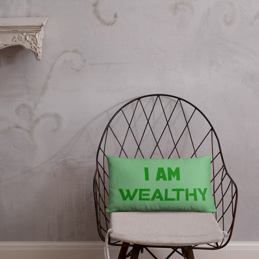 Motivational Throw Pillow " I AM WEALTHY" Inspiring Law of affirmation Basic Throw Pillow